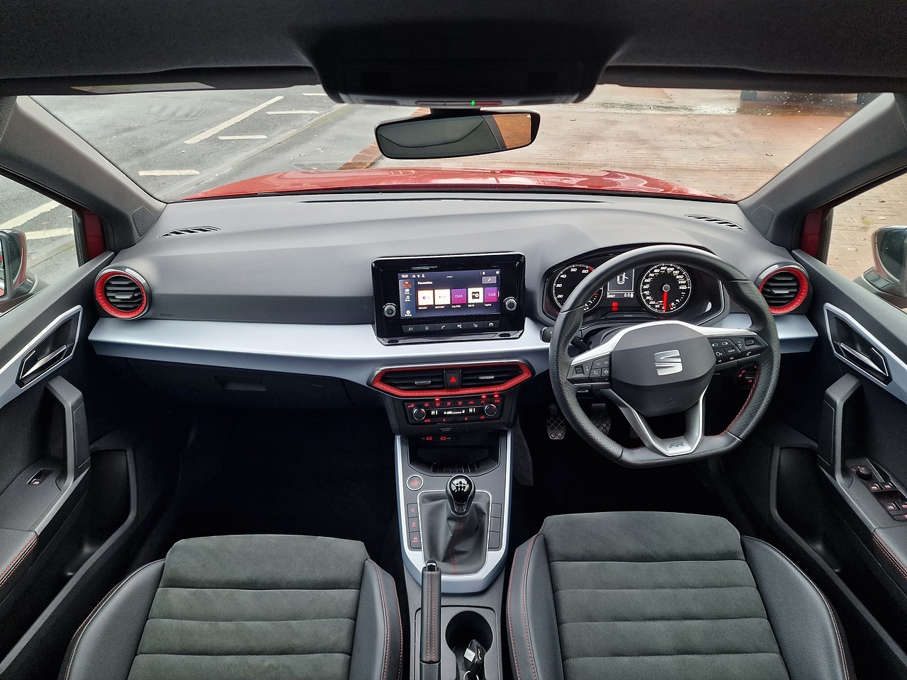 The standard specification on this model is impressive, including 18in alloy wheels, touchscreen display, dual zone climate control, cruise control, full LED automatic headlights, rear parking sensors, and much more. The interior features black interior roof, contrast roof, and perforated leather flat-bottomed steering wheel with red stitching for a sporty feel.